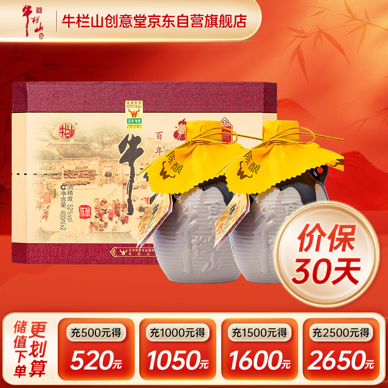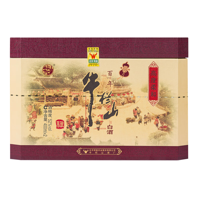 牛栏山百年陈酿三牛 高度柔和 浓香型白酒 52度400ml*2瓶 礼盒装价格:292.00元!