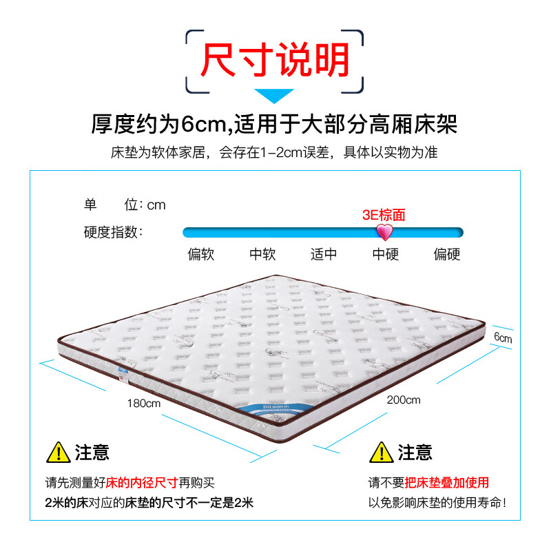 宜眠坊床垫 3E椰棕床垫 老人青少年偏硬棕垫A302-06 1.5*2米价格:399.00元!