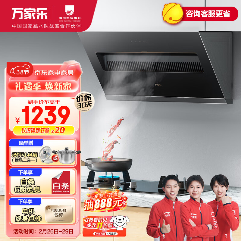 万家乐 抽油烟机 烟灶套装 18m3/min大吸力侧吸式油烟机 家用吸油烟机燃气灶具套装AL041+KA031B天然气价格:1439.00元!