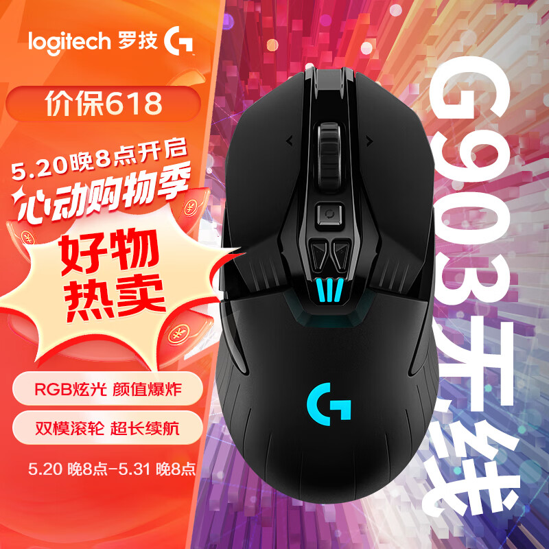 罗技(G)G903 LIGHTSPEED 升级版 无线游戏鼠标 RGB 升级HERO传感器 吃鸡LOL鼠标 左手鼠标 右手鼠标价格:649.00元!