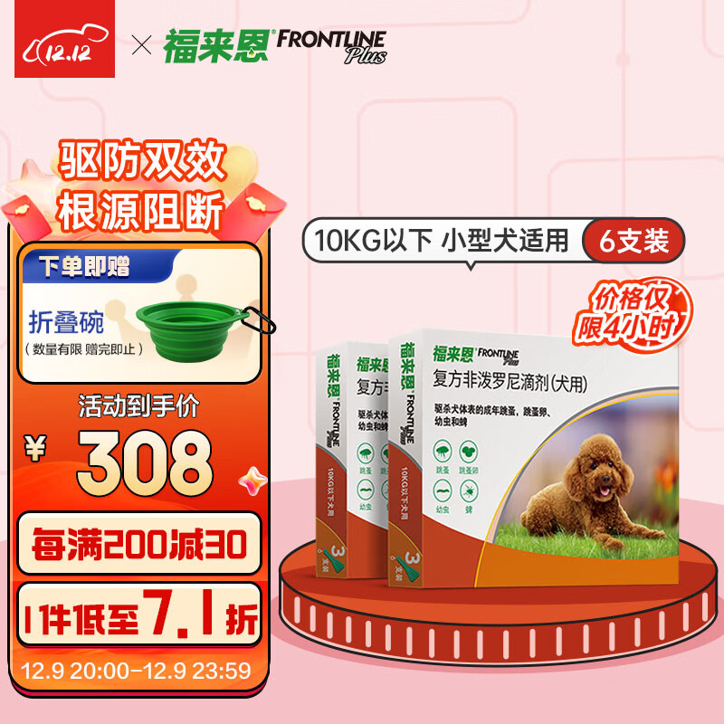 福来恩(FRONTLINE)狗狗驱虫药体外滴剂 宠物去除跳蚤蜱虫药品法国进口小型犬 0.67ml*6支装价格:433.00元!