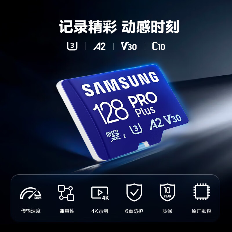 三星(SAMSUNG)128GB TF(MicroSD)内存卡 读180MB/s写130MB/s 游戏机无人机运动相机高速存储卡 含SD适配器价格:119.00元!