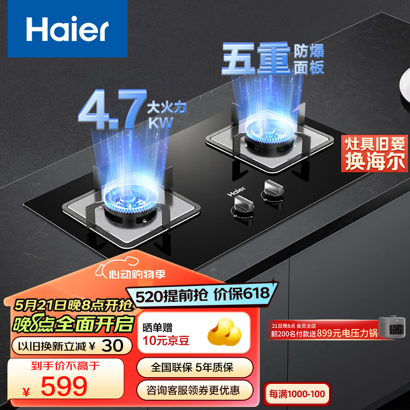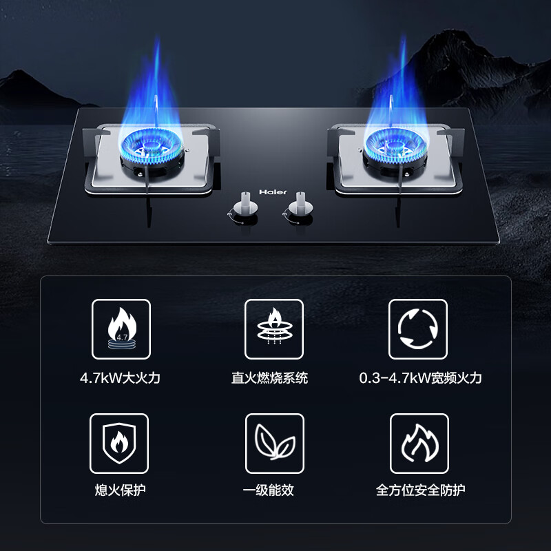 海尔(Haier)燃气灶天然气 嵌入式双灶具 4.7kw大火力 自动熄火保护 五重防护 台嵌两用一级能效Q2BE1(天)价格:699.00元!