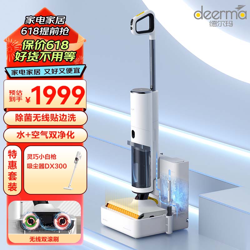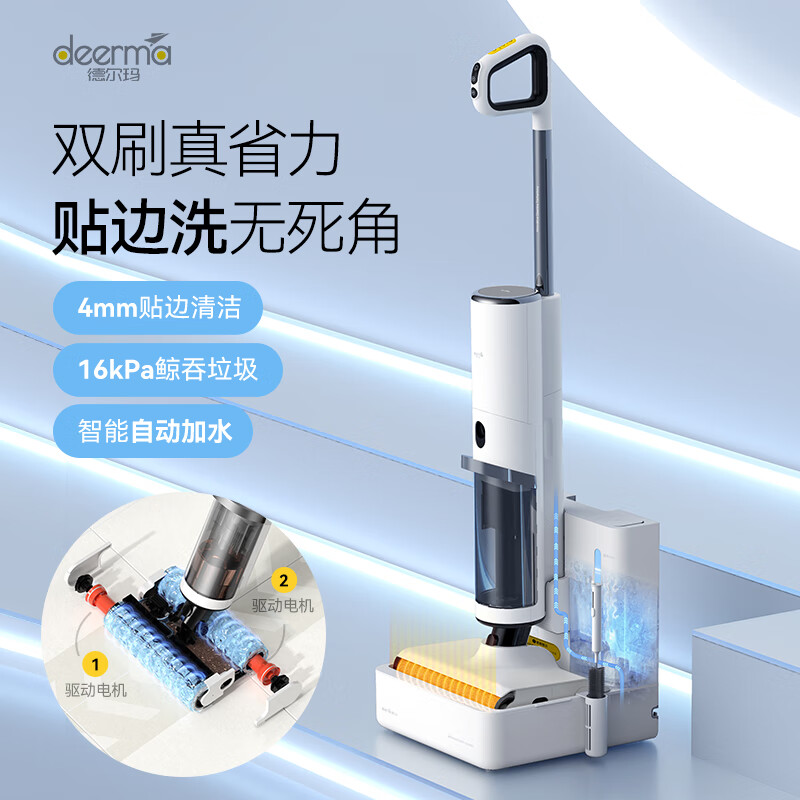 德尔玛(Deerma)P50 无线洗地机洗地机家用吸拖一体自动加水双滚刷电解水除菌 基站热风烘干VX900-P50slim价格:2099.00元!