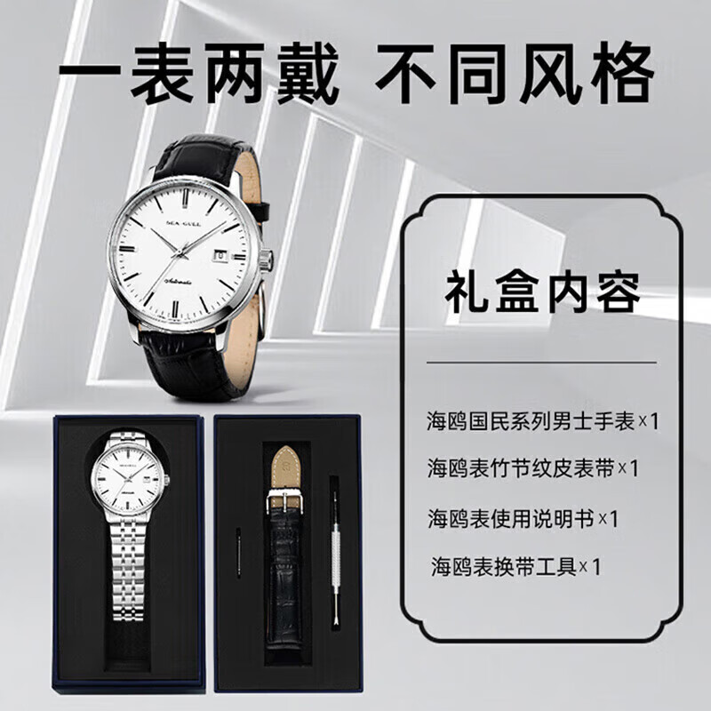 海鸥(SEAGULL)手表男士自动机械表 男表礼物 小钢炮日历男士腕表套装816.362价格:1369.00元!