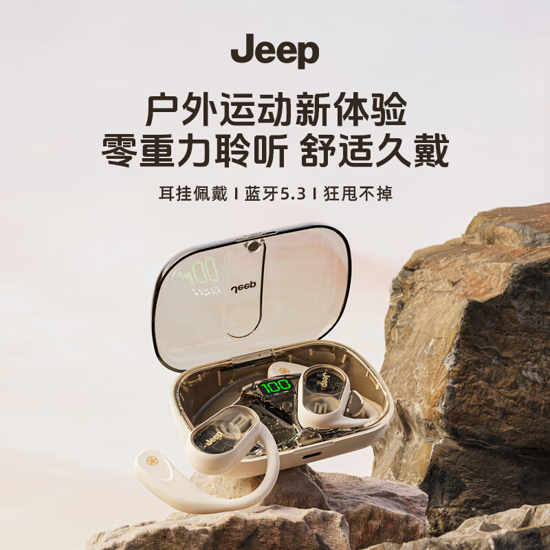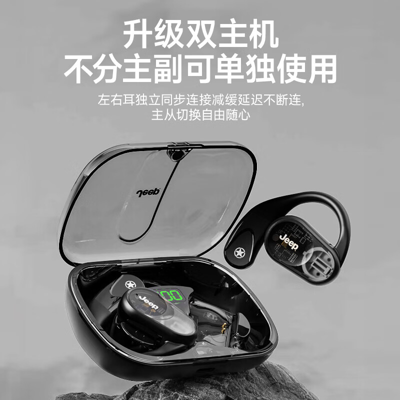Jeep挂耳式 蓝牙耳机 开放式真无线不入耳 运动跑步通话降噪运动耳机 适用安卓苹果华为手机 黑色价格:159.00元!