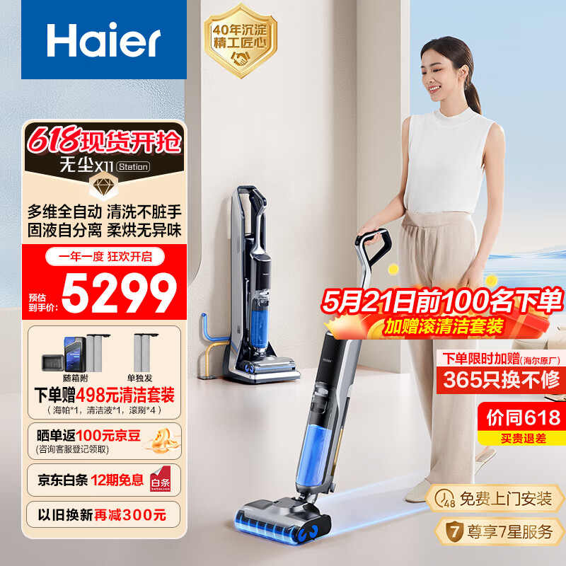 海尔家用洗地机吸拖一体扫地机器人扫拖一体自动清洗全自动无线吸尘器自动上下水无尘X11station基站款价格:5599.00元!