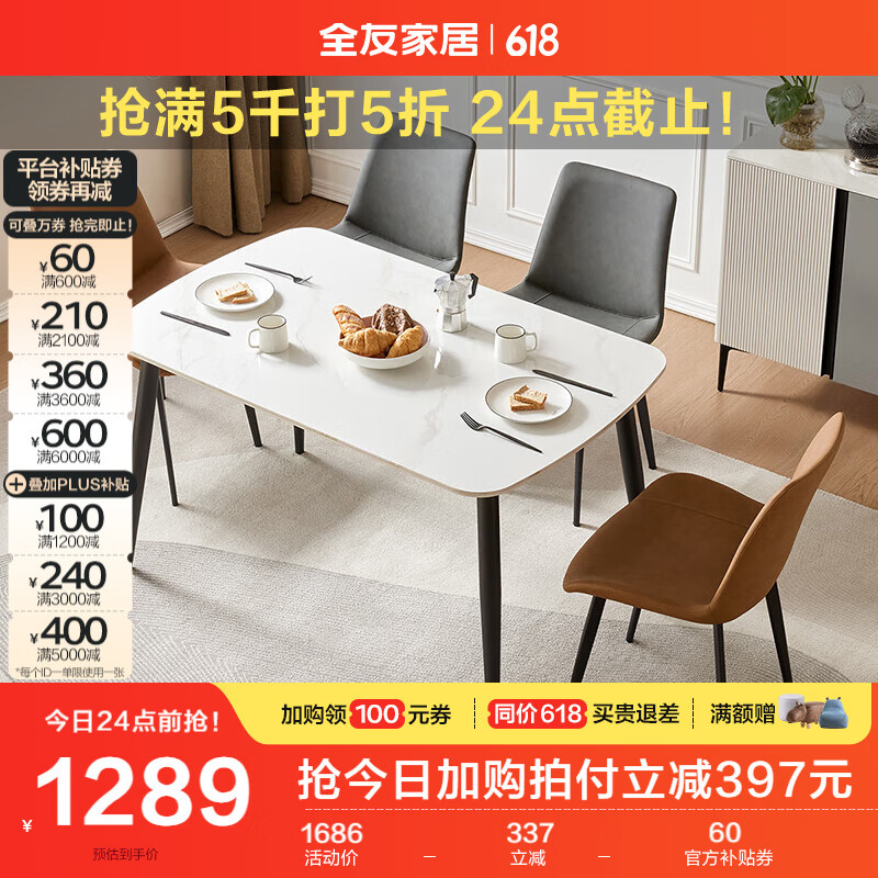 全友家居 餐桌耐用岩板台面长条桌餐厅稳固金属框架吃饭桌子DW1179价格:1686.25元!