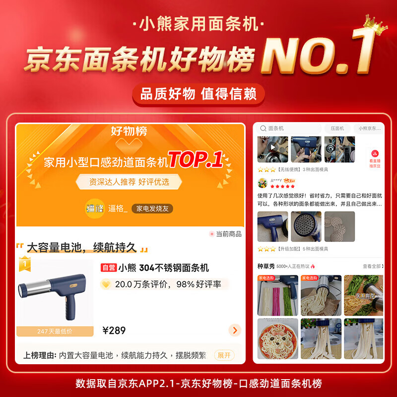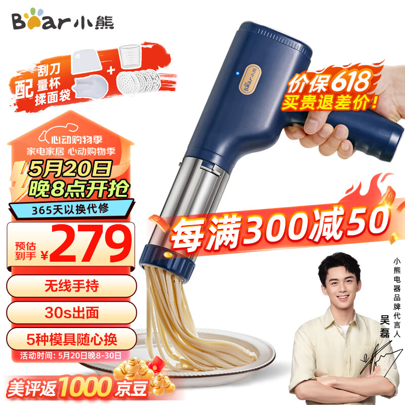 小熊(Bear )面条机 家用压面机 手持压面枪 小型电动自动不锈钢压面条机 YMJ-A01V1五种出面模具价格:279.00元!