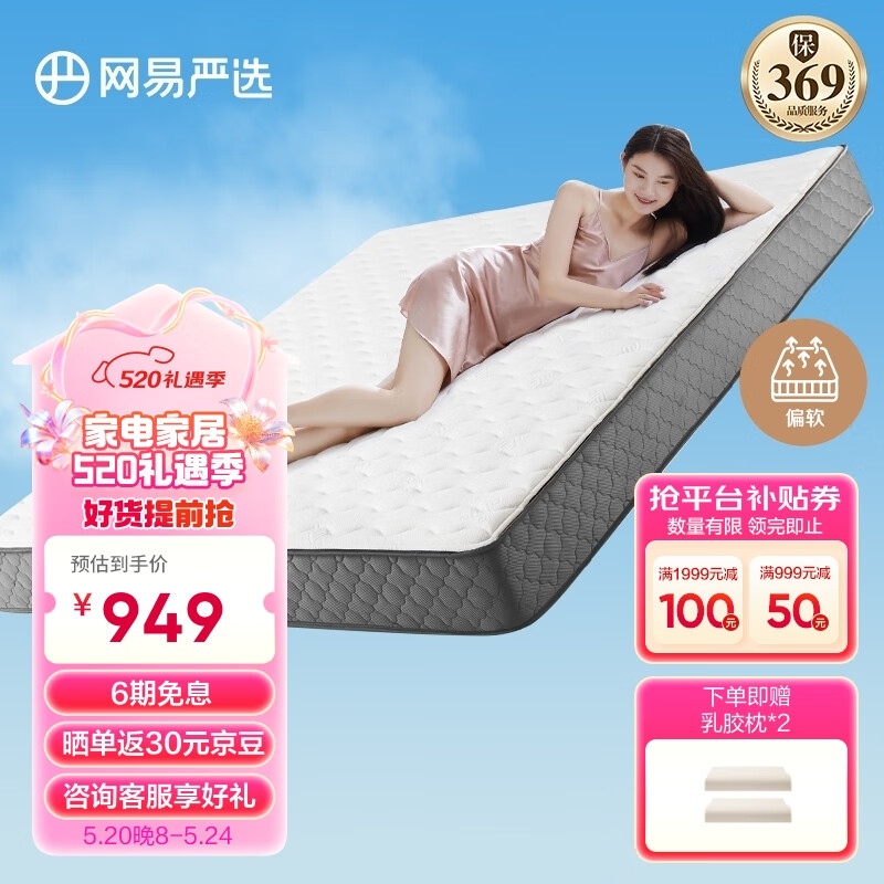 网易严选 弹簧床垫1.5米*2米 乳胶床垫 3D椰棕席梦思床垫 乳胶款价格:1099.00元!