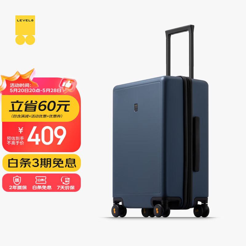 地平线8号(LEVEL8)行李箱男拉杆箱女托运箱24英寸PC箱大容量 万向轮旅行箱 蓝色价格:469.00元!