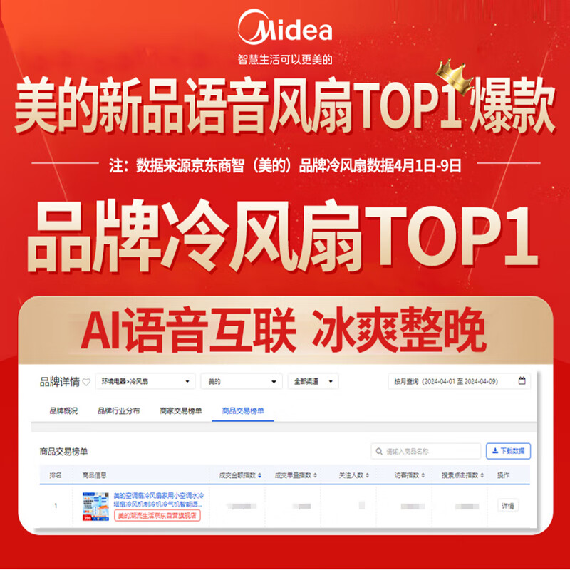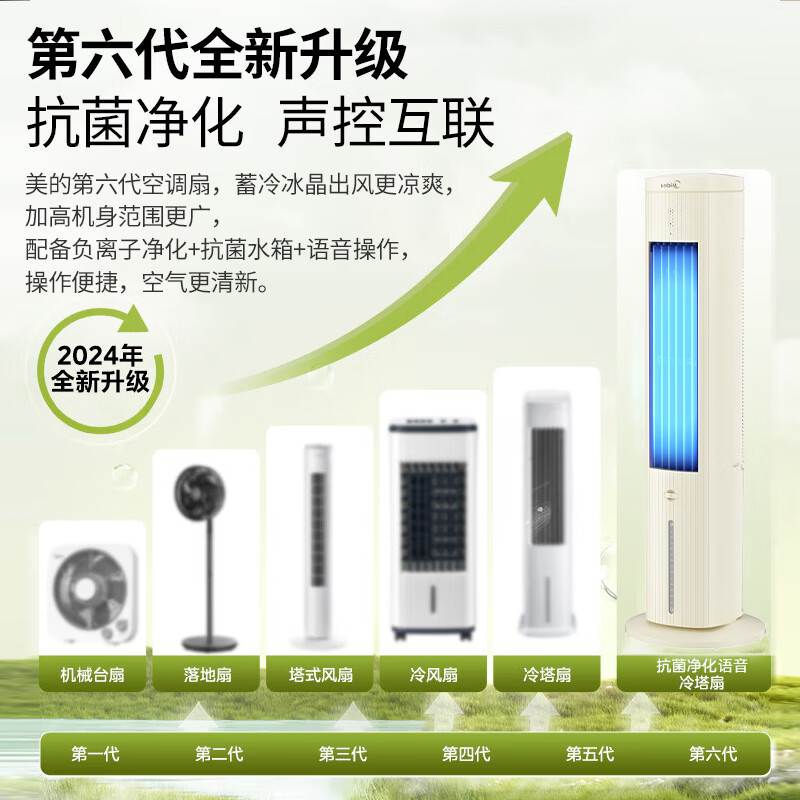 美的空调扇冷风扇家用小空调水冷塔扇冷风机制冷机冷气机智能语音遥控加湿客厅卧室负离子净化水冷风扇 语音控制/负离子净化-旗舰上市-AAH10HTR价格:549.00元!