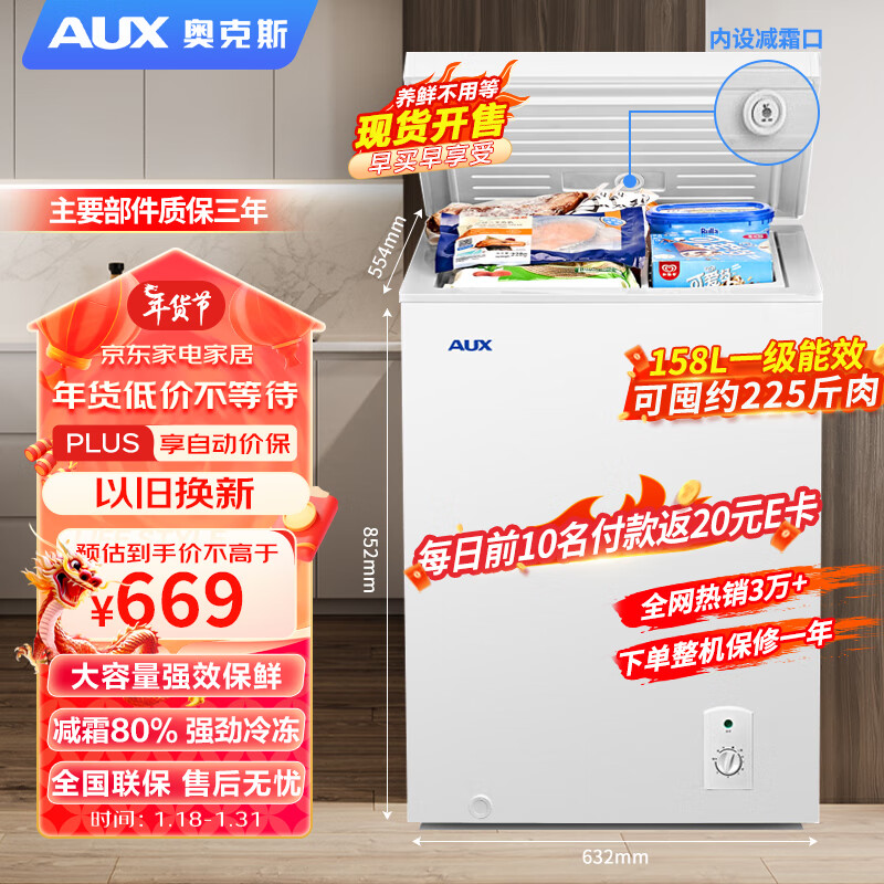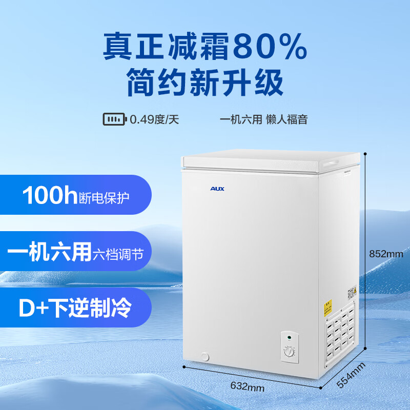 奥克斯(AUX)158L升减霜大容量冷柜家用小型冰柜商用单温立卧式冷冻冷藏柜节能省电轻音BC/BD-158L价格:1349.00元!