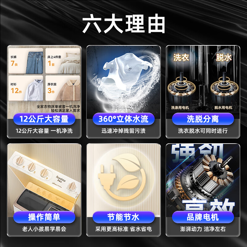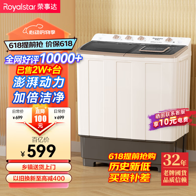 荣事达(Royalstar)洗衣机 12公斤双筒家用双缸半自动双桶洗衣机大容量甩干机 以旧换新 RP12030J价格:599.00元!