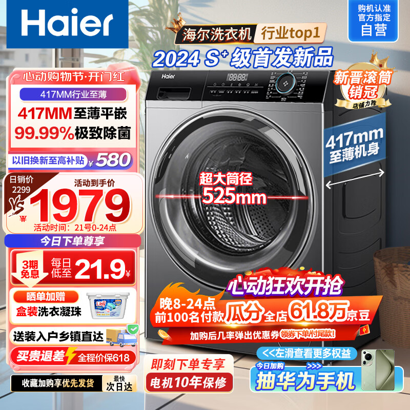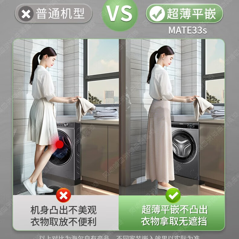 海尔(Haier)全自动滚筒洗衣机8KG大容量超薄平嵌 变频羊毛羽绒洗大筒径筒自洁除菌螨14126升级MATE33s以旧换新价格:1969.00元!