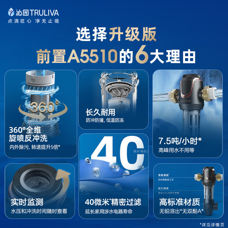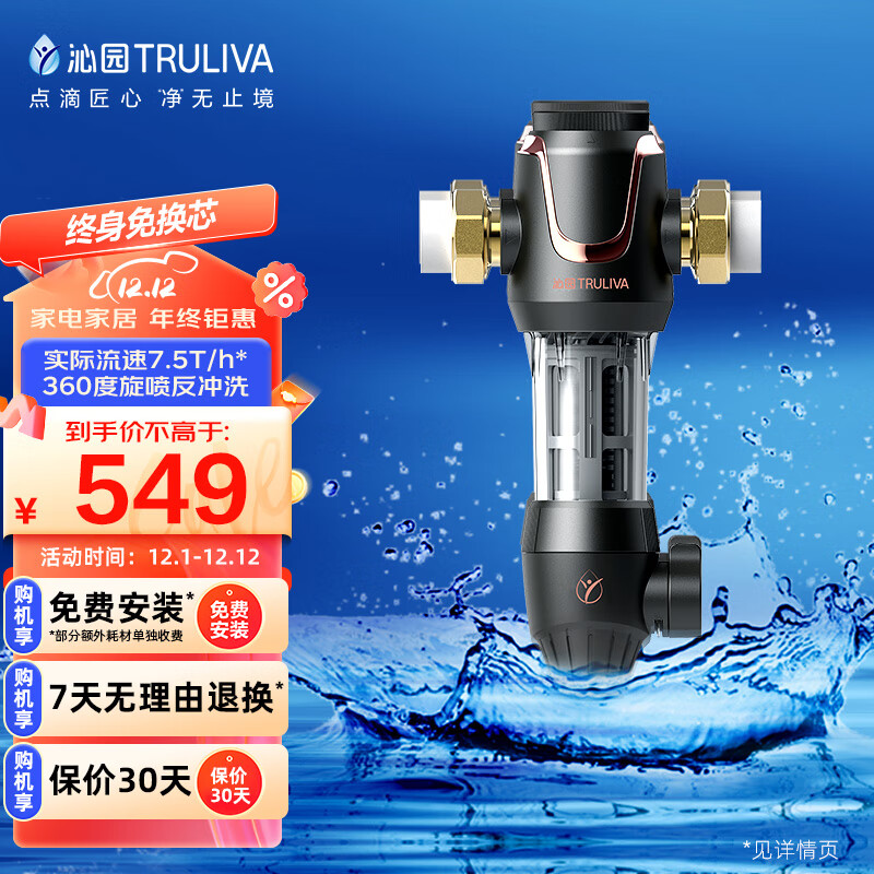 沁园(TRULIVA)升级款顶配前置过滤器 7.5吨/小时大流量 全屋家用净水器P-A5510价格:549.00元!
