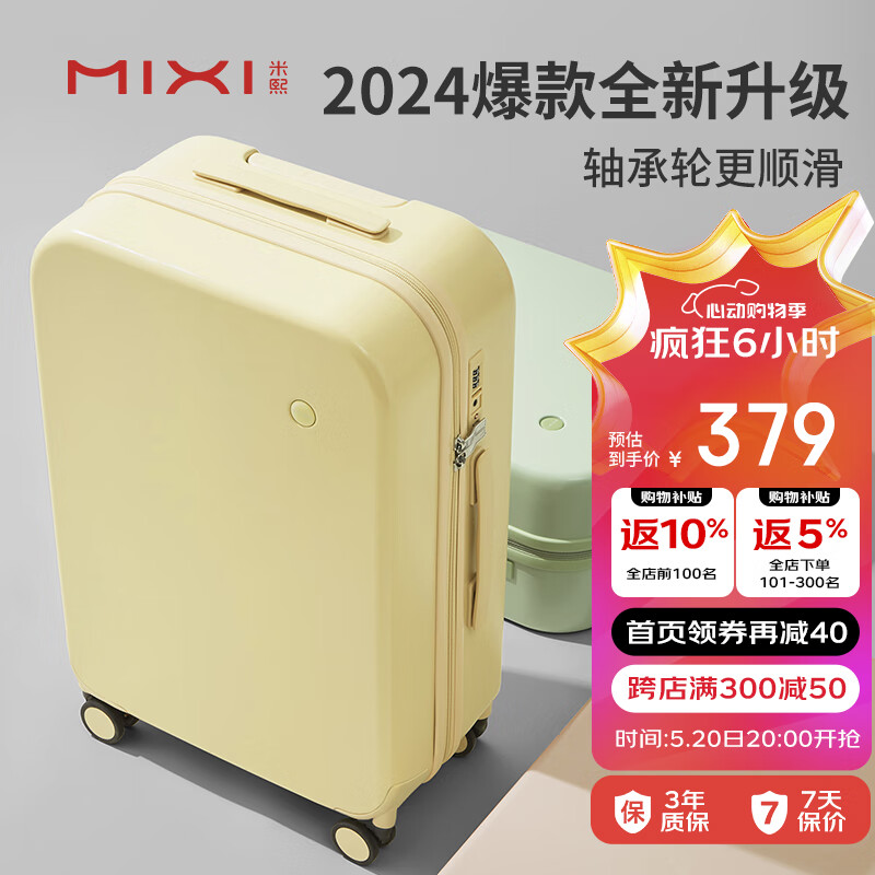 米熙mixi高颜值拉杆箱子行李箱大容量女旅行箱密码箱男24英寸云雀黄36价格:559.00元!