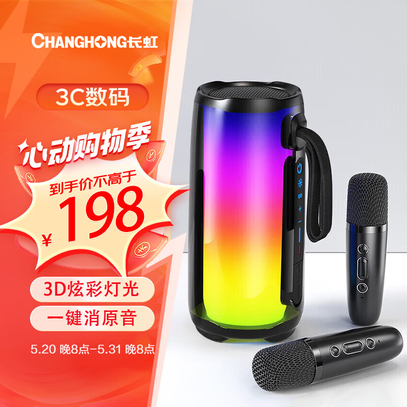 长虹K7话筒音响一体自带声卡家庭KTV套装无线蓝牙音箱手机电视户外家用唱歌麦克风儿童k歌神器 双麦价格:198.00元!