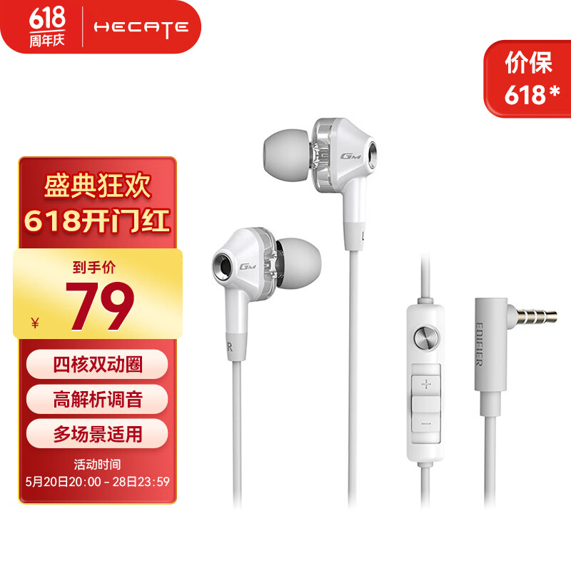 漫步者(EDIFIER)HECATE GM360耳机 入耳式双动圈四核低音炮音乐耳麦 手机电脑线控电竞游戏吃鸡耳塞 白色价格:119.00元!