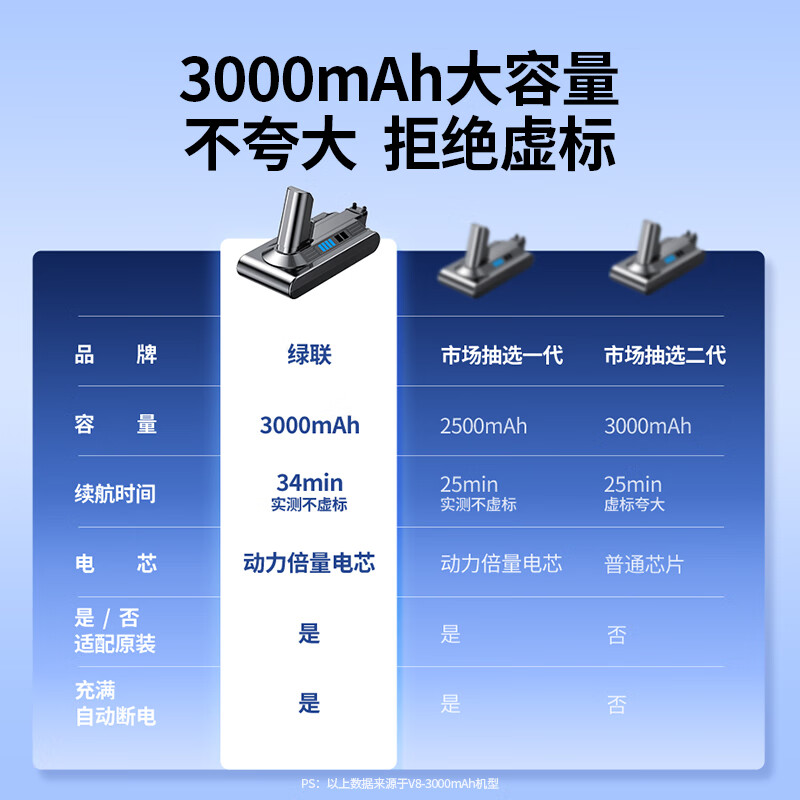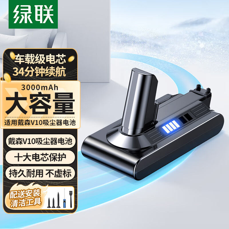 绿联3000mAh适用戴森Dyson吸尘器V10电池 大容量充电电池SV12/Animal/Fluffy/Motorhead/Absolute型号价格:329.00元!