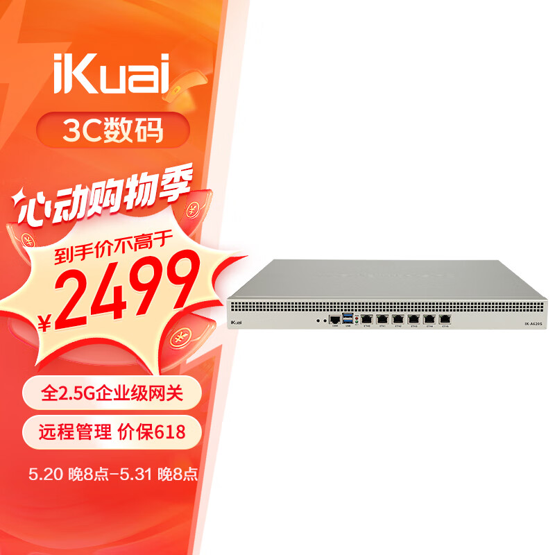 爱快(iKuai)全2.5G企业路由器 多WAN/多LAN口 一键认证/VPN/策略路由/日志审计 USB3.0 19英寸带机600台A620S价格:2499.00元!