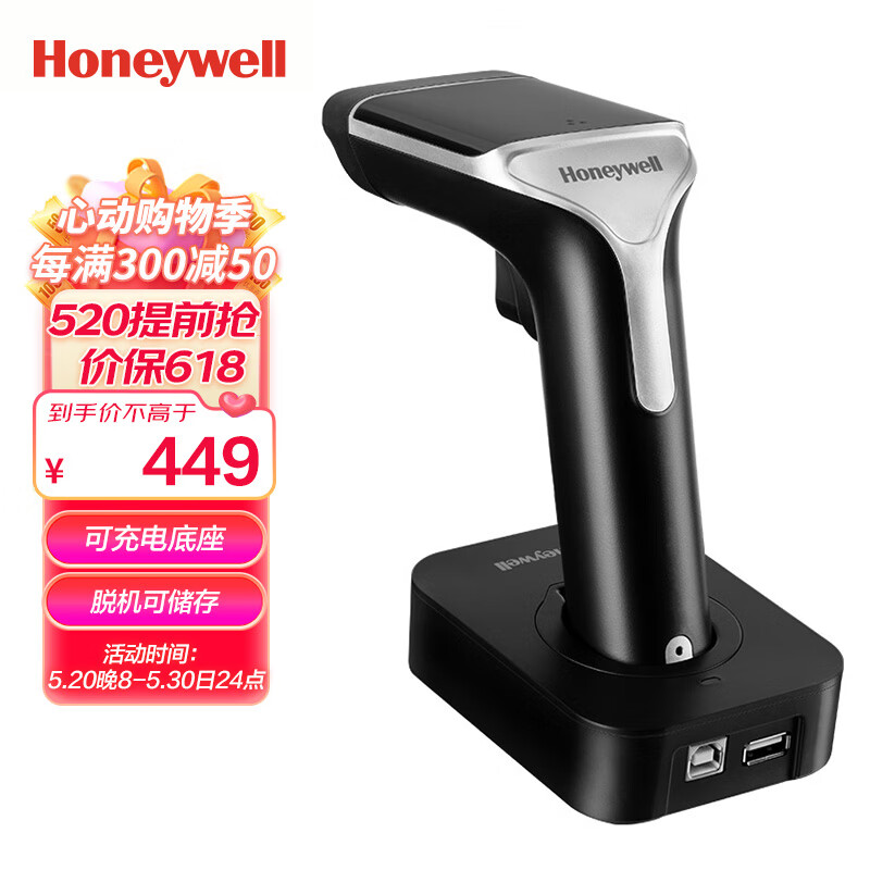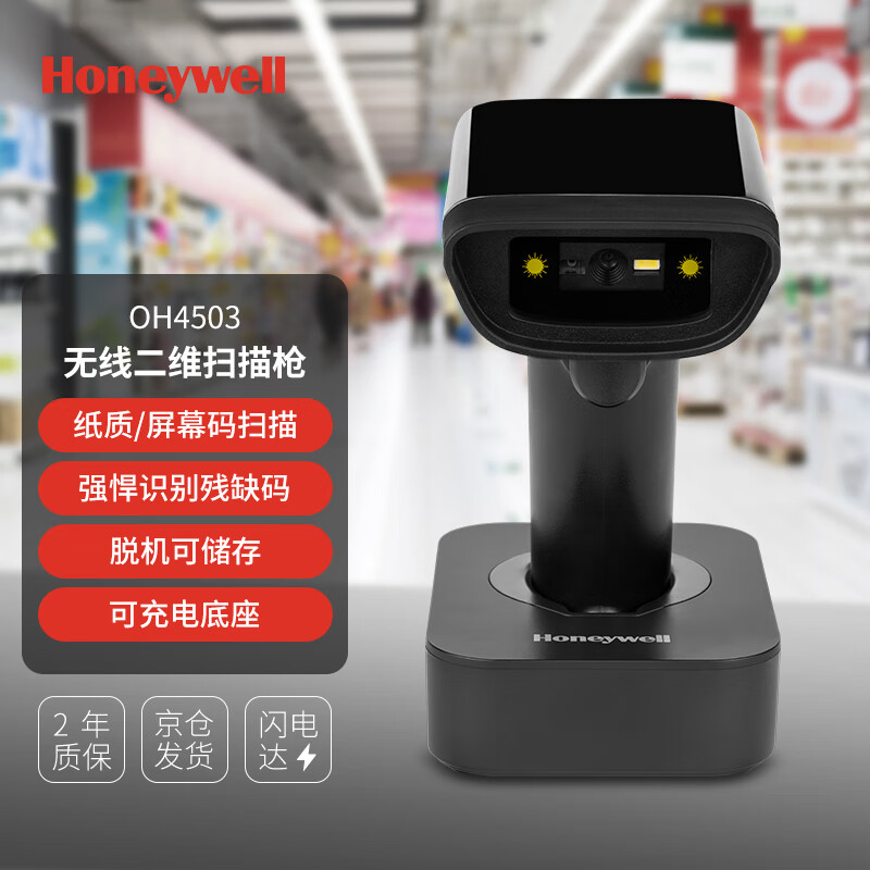 霍尼韦尔(Honeywell)无线扫码枪 扫码枪 条形码 二维码扫描枪 充电底座 商超仓储物流 屏幕码扫码器 OH4503黑价格:499.00元!