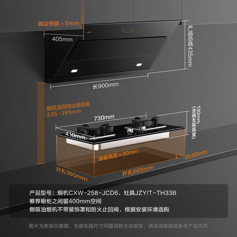 烟机安装尺寸:900±50mm