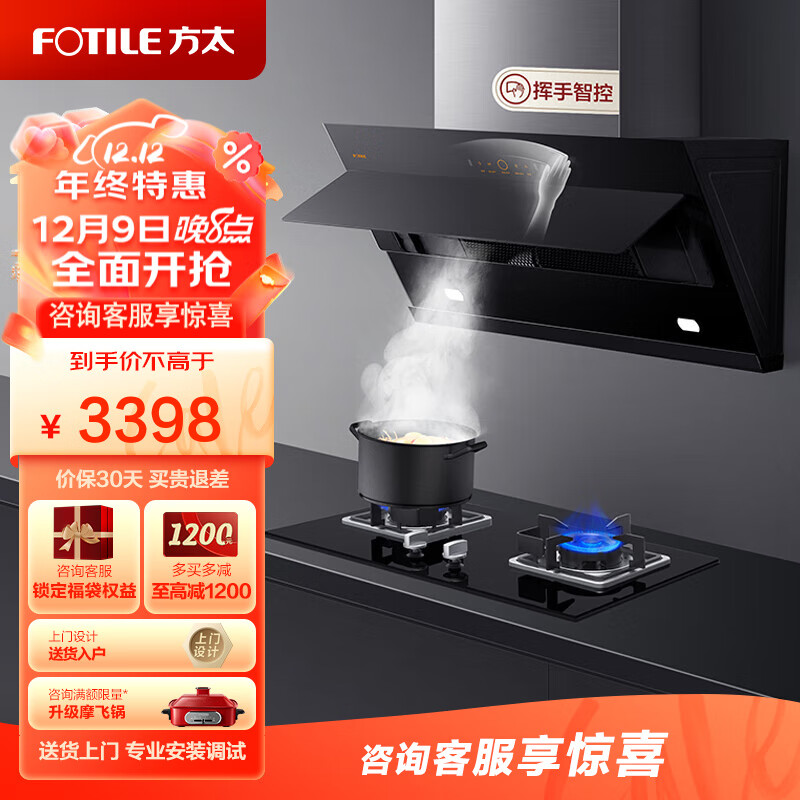 方太侧吸式近吸抽吸脱排7油烟机燃气灶具家用厨房烟灶套装挥手21风量JCD6+TH33B(天然气)价格:3398.00元!