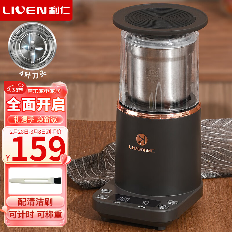 利仁(Liven)磨粉机计时称重研磨机磨豆机多功能料理机家用小型电动打粉机超细咖啡豆五谷杂粮粉碎机 CMS-D816价格:159.00元!