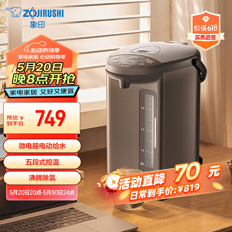 象印(ZO JIRUSHI)电水壶五段控温微电脑可定时 家用办公4L容量CD-WQH40C-TM(金属棕色)价格:849.00元!