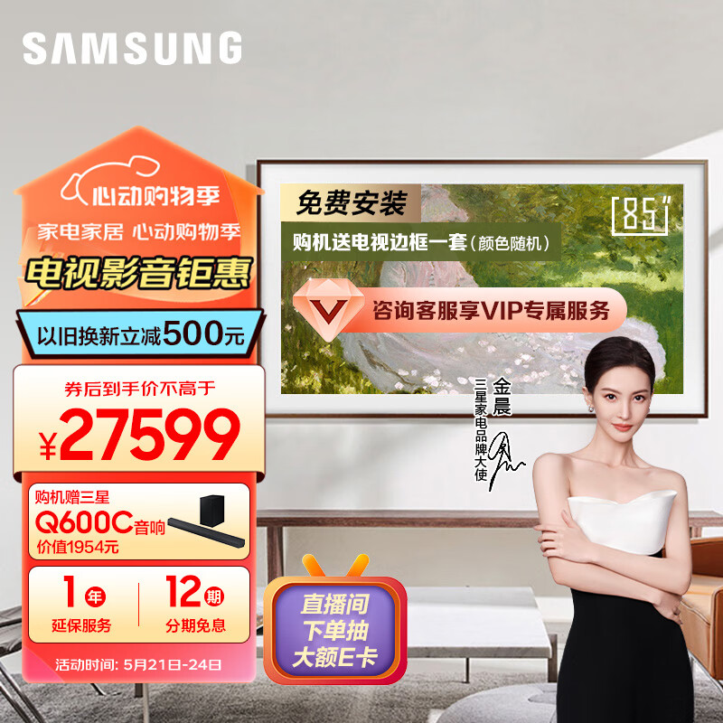 三星(SAMSUNG)85LS03C 85英寸 frame画壁艺术电视 120Hz QLED量子点 超薄4K 空间美学 QA85LS03CAJXXZ价格:27999.00元!