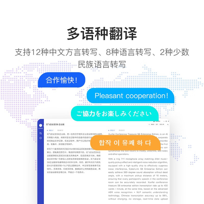 科大讯飞会议宝S8 录音转写 会议纪要转写机 智能会议机 办公会议录音转录 实时语音转文字 企业版价格:1019.00元!
