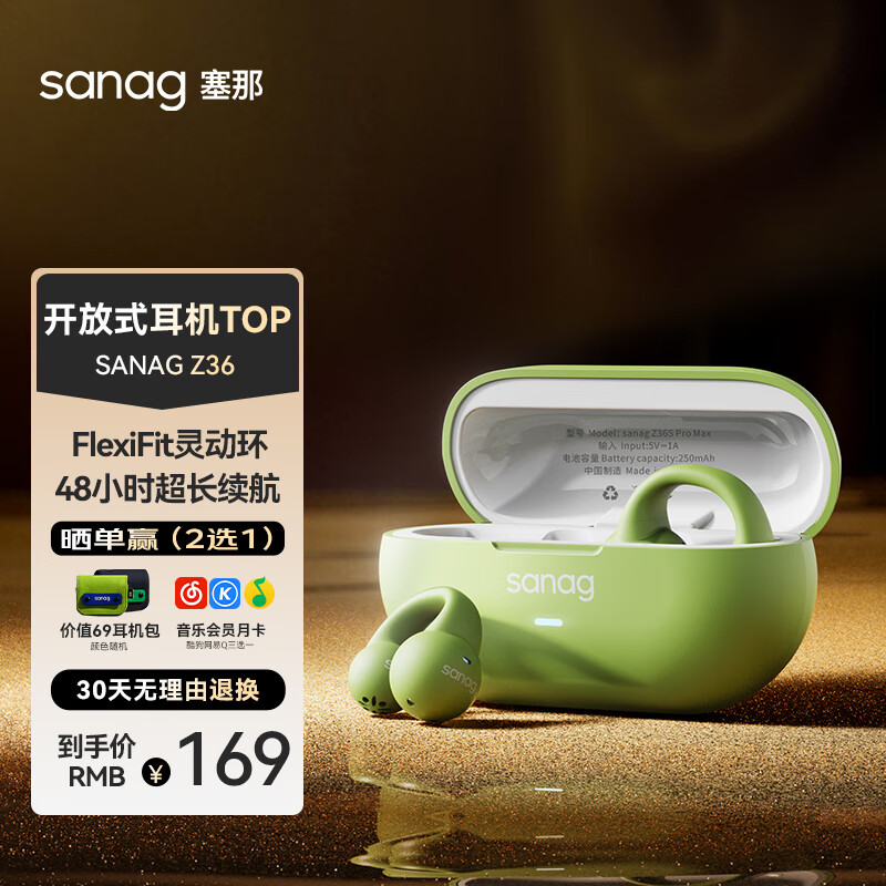 SANAGZ36塞那【开放式耳机TOP】骨传导概念蓝牙耳机无线夹耳夹式耳机不入耳挂耳式运动耳机通话降噪 原野青|杜比环绕音|限定色价格:199.00元!