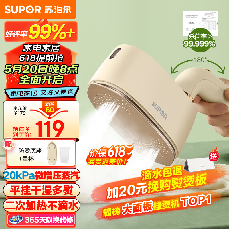 苏泊尔(SUPOR)挂烫机微增压大蒸汽家用手持熨烫机电熨斗大功率旅游出差便携式除菌熨斗礼品团购EGH-915A价格:118.80元!
