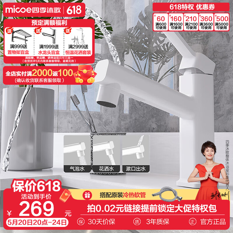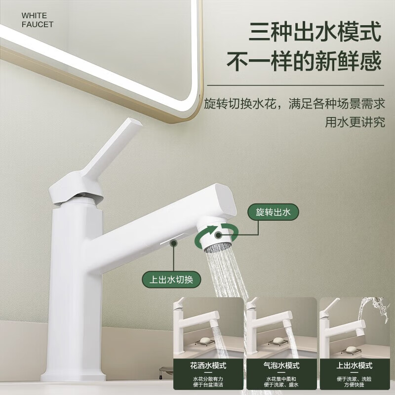 四季沐歌面盆水龙头 白色抽拉式漱口浴室卫生间洗手间洗脸台盆冷热水龙头价格:299.00元!