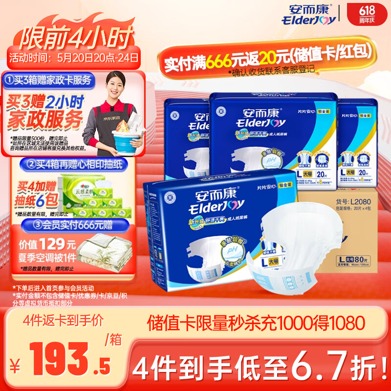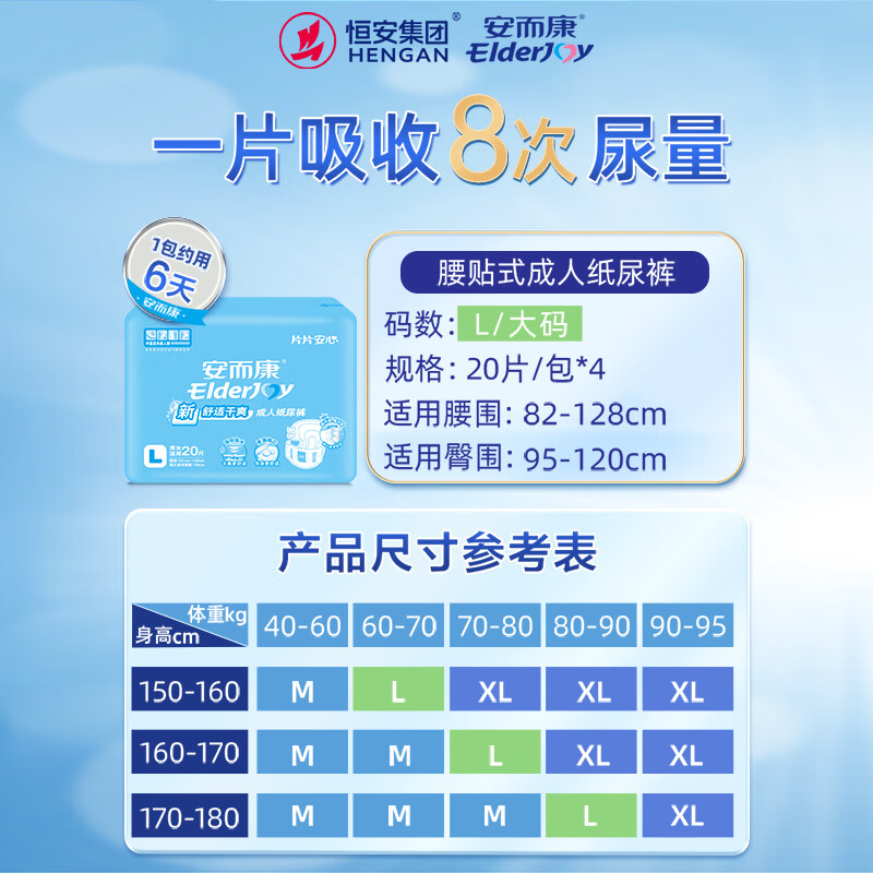 安而康(Elderjoy)舒适干爽成人纸尿裤 老年人尿不湿 产妇双芯防漏 L80片价格:251.00元!