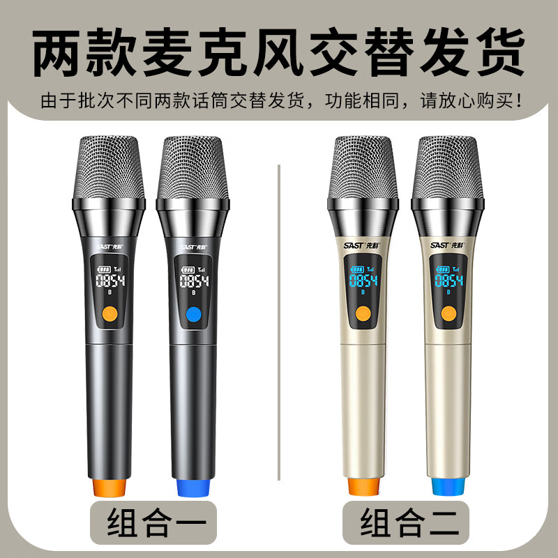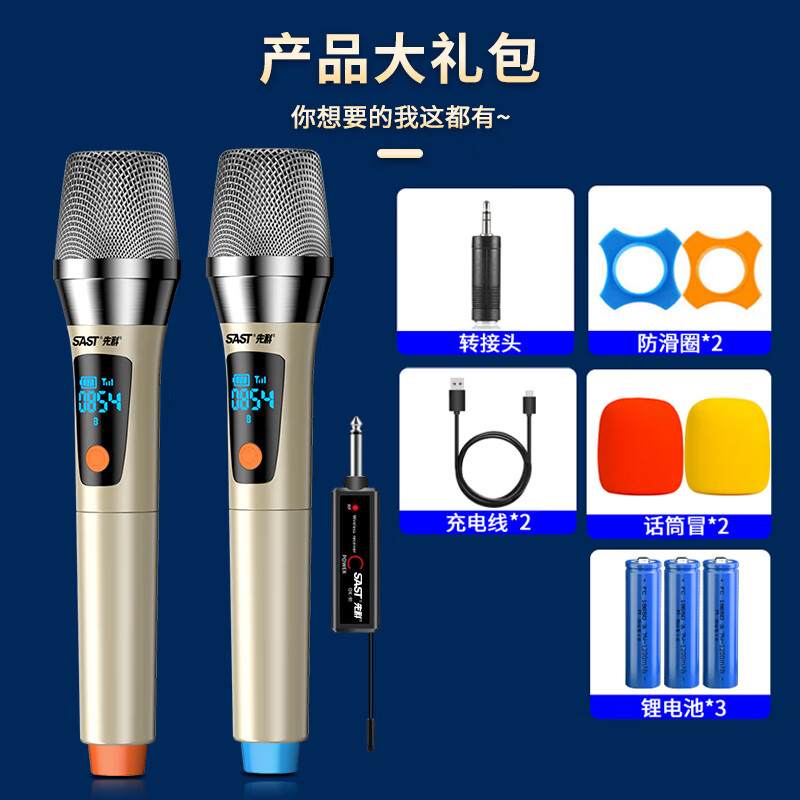 先科 OK-123充电无线麦克风U段家庭KTV唱歌舞台主持演讲K歌会议音箱音响功放调频一拖二金属话筒价格:399.00元!