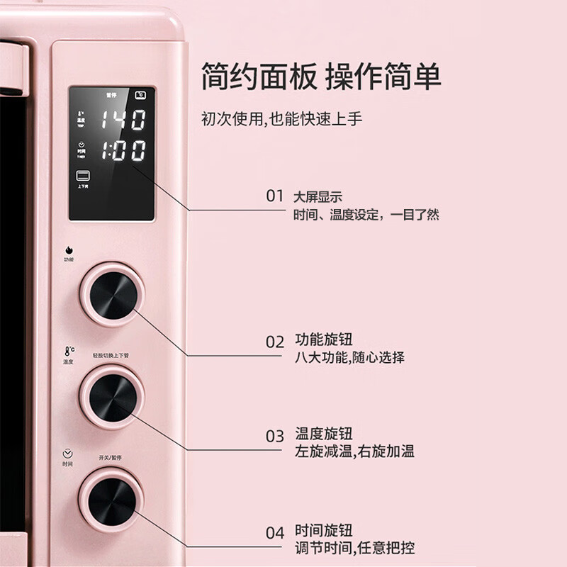 2、很好用,质量很好,价格也很实惠,物流也很快,包装很严实,值得购买,烤箱容量挺大的,温度也比较准确,操作简单,制作食物也很便利,颜色很好看,是淡粉色的,非常好用!满意!