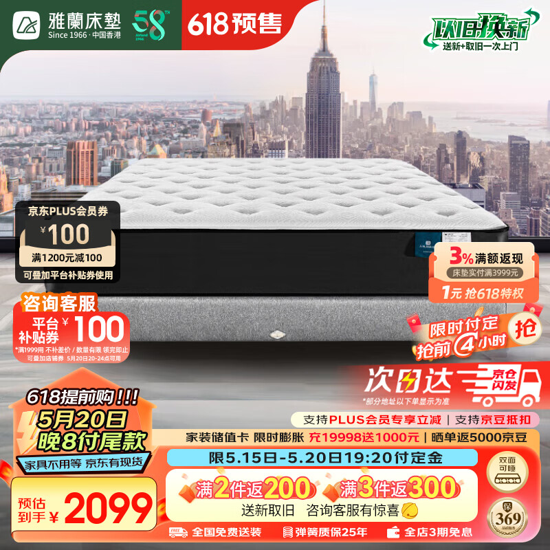 雅兰50周年纪念款 软硬适中独袋弹簧乳胶床垫 蘭朋友舒适2.0 1.8*2米价格:2699.00元!
