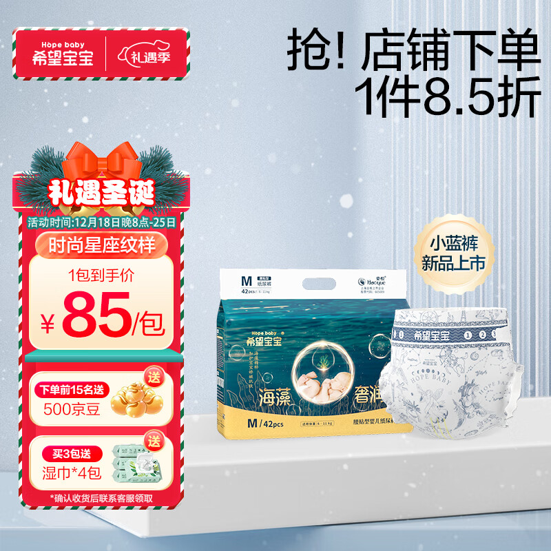 希望宝宝海藻奢润纸尿裤M42片泡泡腰围超薄透气婴儿尿不湿价格:100.00元!