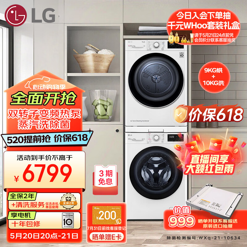 LG纤慧洗烘套装10kg蒸汽除菌洗衣机+9kg原装进口双转子变频热泵烘干机 除菌除螨FCY10Y4W+RC90V9AV6W价格:9279.00元!