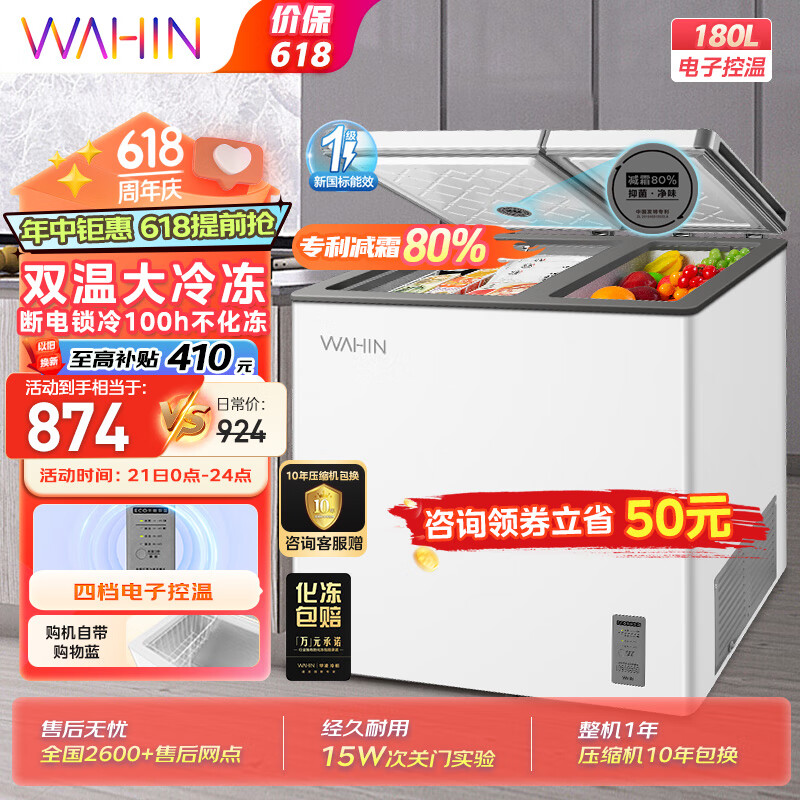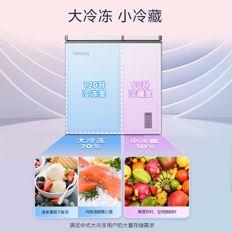 华凌 美的出品180升双温冰柜 家用商用囤货双箱冷柜 冷藏冷冻速冻冰柜双温冷柜卧式冰箱BCD-180DKEWH价格:924.00元!