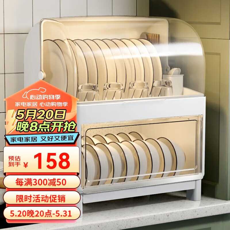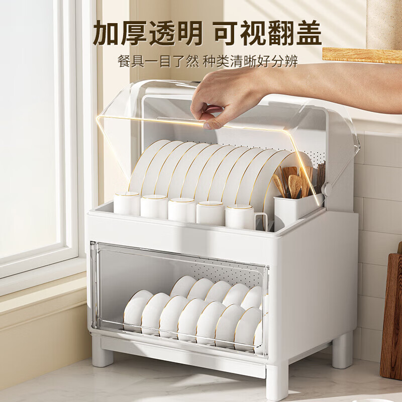 品喻(PINYU)【特大号】碗碟收纳架 家用厨房双层碗柜碗筷收纳盒带盖碗碟盒 白价格:158.00元!