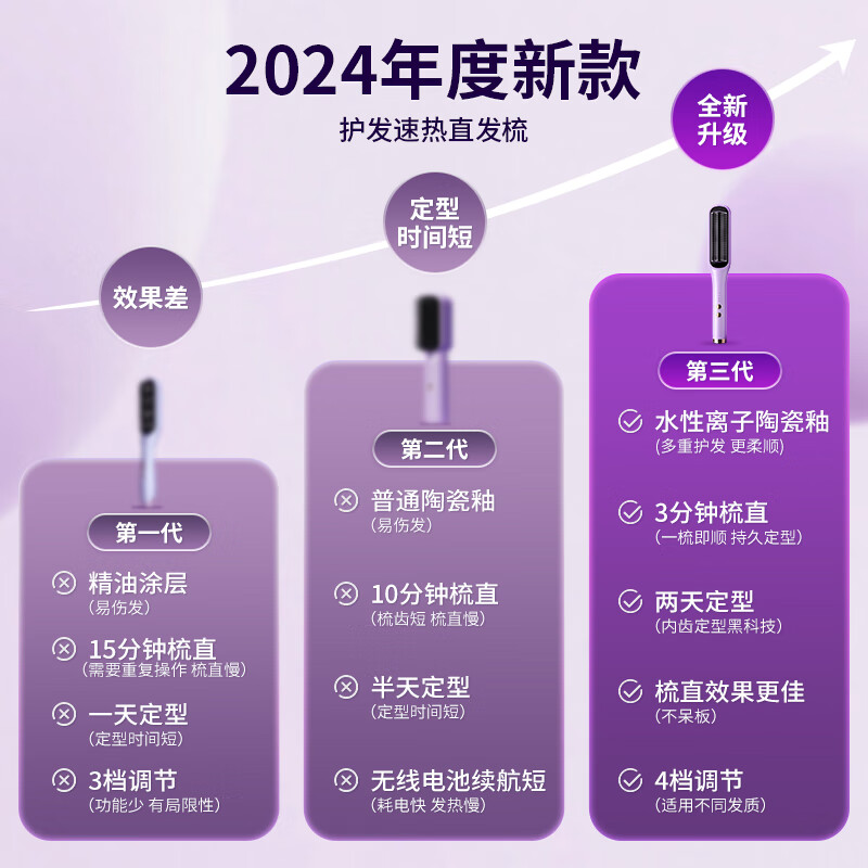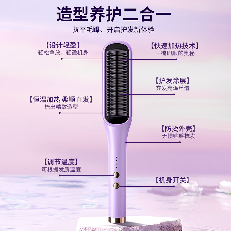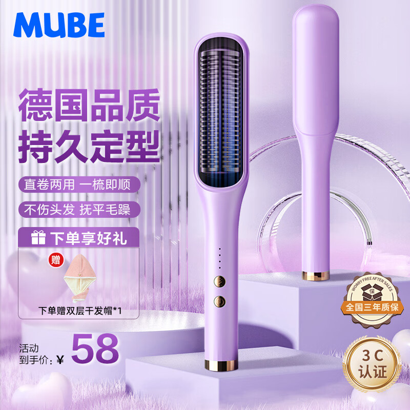 MUBE直发梳负离子梳子便携蓬松神器拉直头发夹板女士防烫短发内扣家用不伤发生日礼物送女生老婆 香芋紫【告别毛躁/一梳即顺】 40mm价格:109.00元!
