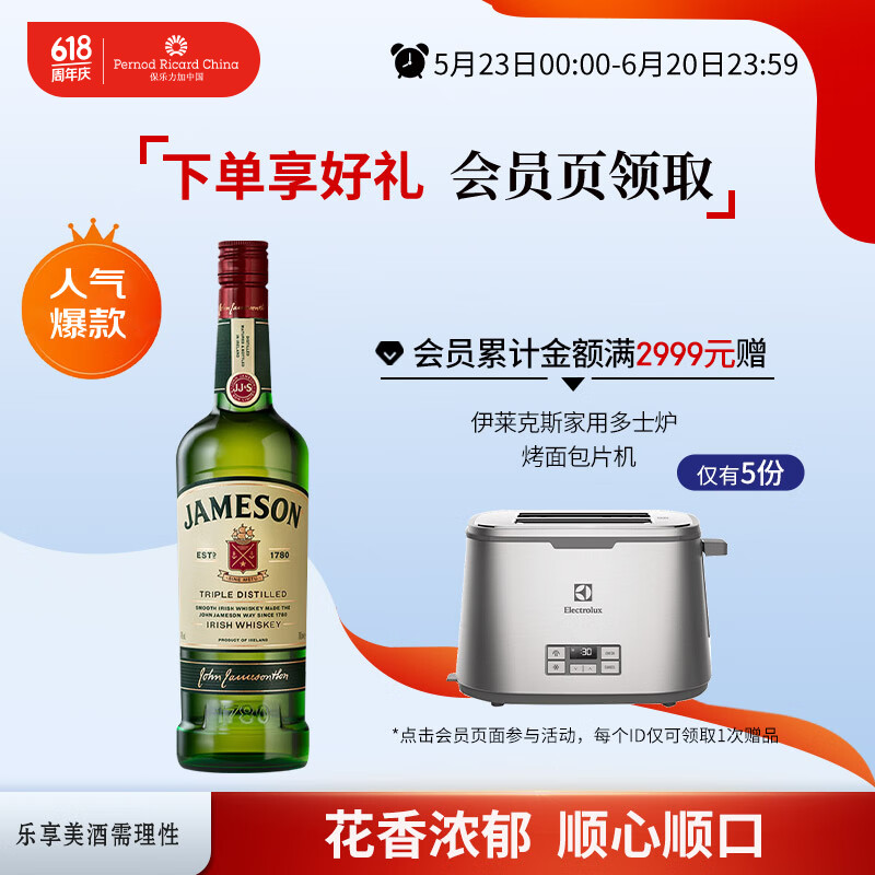 尊美醇(Jameson)爱尔兰 调和型 威士忌 洋酒 700ml价格:119.00元!