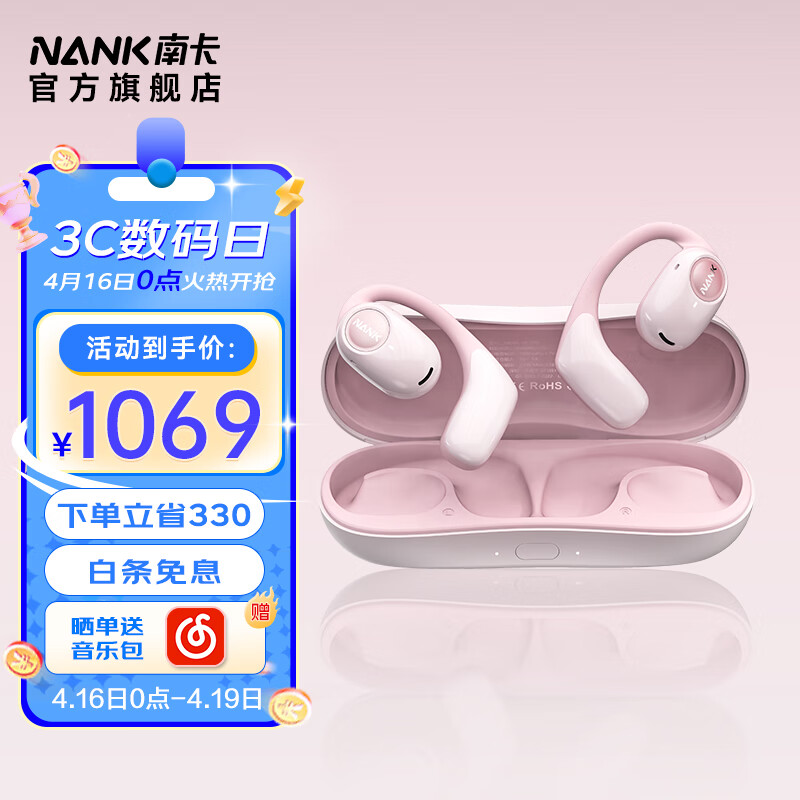南卡(NANK)00压运动蓝牙耳机不入耳开放式跑步耳机无线耳机挂耳式超长续航 OE pro 璎珞粉价格:1209.00元!
