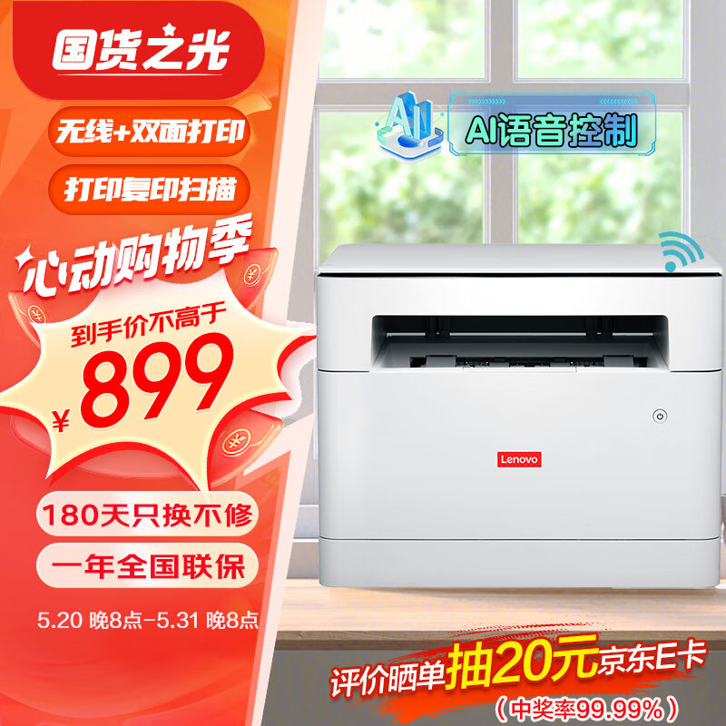 联想(Lenovo)M1688DW Pro 自动双面无线激光打印机家用办公 打印复印扫描一体机 学生作业打印价格:899.00元!