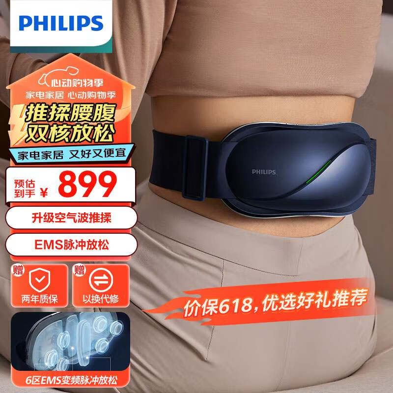 飞利浦(PHILIPS)腰部按摩器按摩仪 腰腹热敷腰带EMS脉冲按摩揉腹仪推揉腰腹腰椎按摩仪器送母亲男女友礼品7501B价格:899.00元!