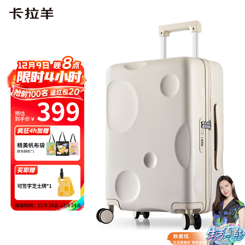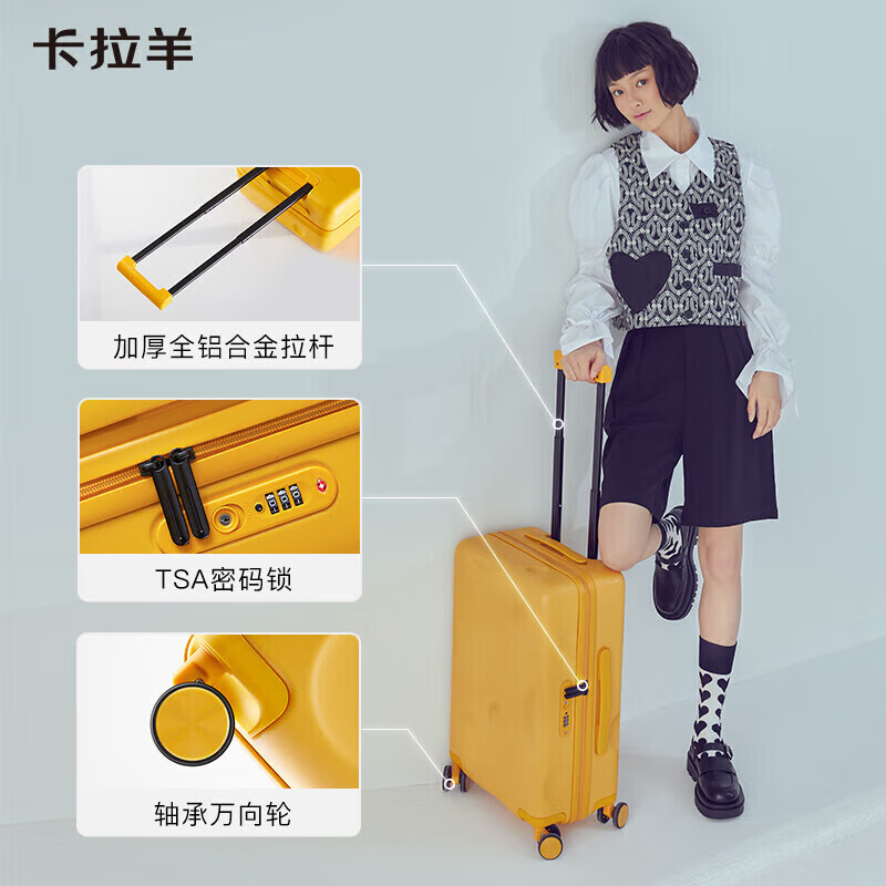 卡拉羊行李箱24英寸大容量男女万向轮拉杆箱高颜值旅行箱CX8109燕麦灰价格:499.00元!