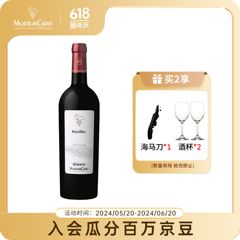 木桐嘉棣(MOUTON CADET)法国 波尔多 珍藏 波亚克 红葡萄酒 750ml 单支价格:459.00元!